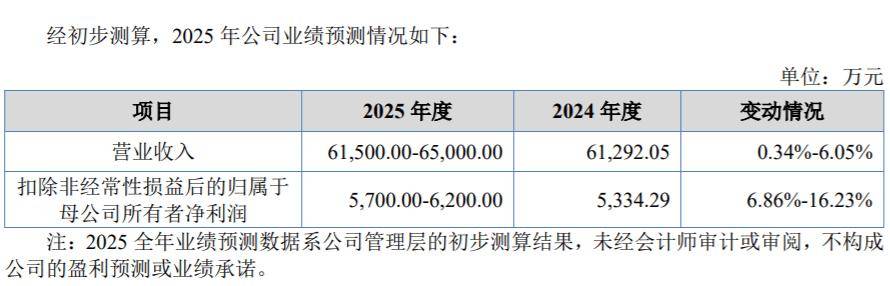 2025年度,天元重工预计实现营业收入6.15亿元至6.5亿元,较2024年增长0.34%至6.05%,扣除非经常性损益后的归属于母公司所有者净利润为5700万元至6200万元,较2024年增长6.86%-16.23%。