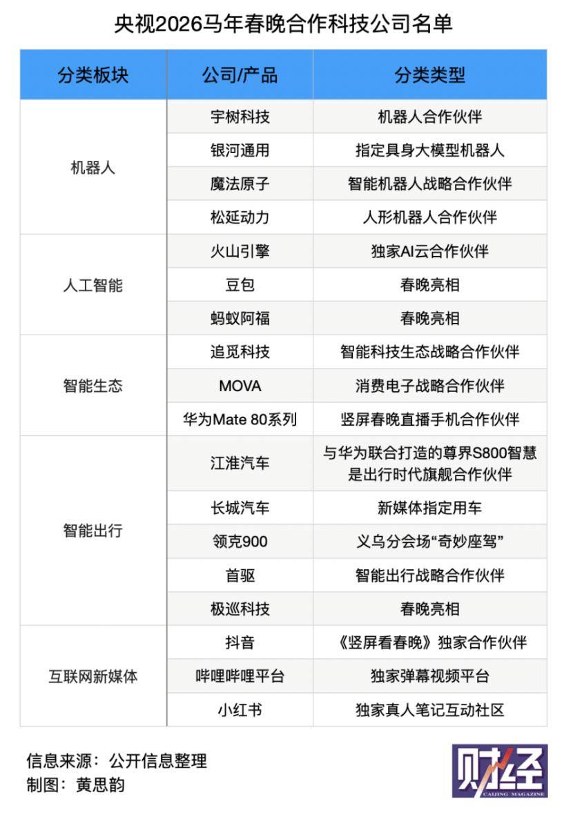 回顾历届春晚合作伙伴,从80年代的手表、自行车,到90年代的家电、白酒,再到新世纪的互联网巨头、电商平台,到连续多年赞助春晚的短视频平台,再到今年的科技新贵扎堆。春晚赞助商的变化也直接体现了中国产业发展的趋势。