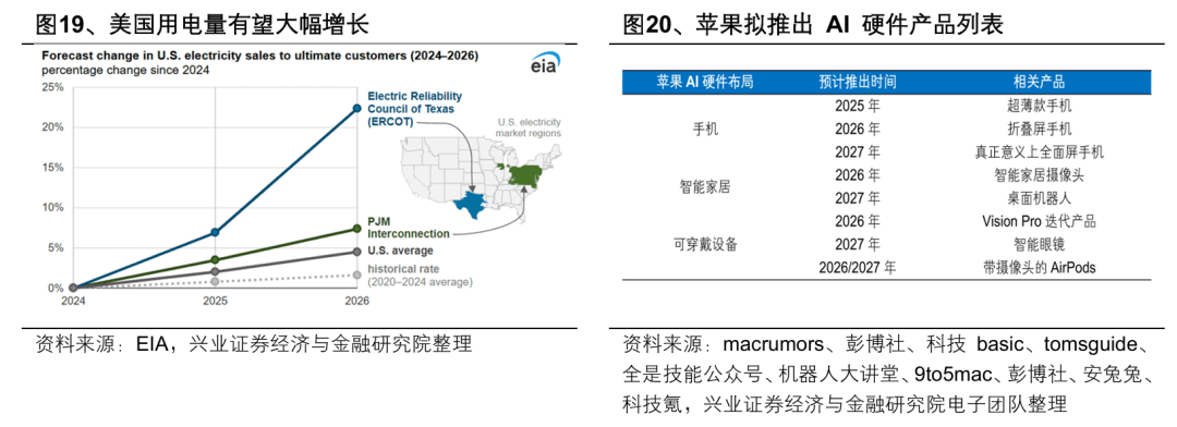 与此同时,AI资本开支高增长的影响正在向上下游传导:上游美国AI用电需求激增,极大拉动电网设备、储能装备的终端需求;下游端侧硬件落地路径清晰,国内制造业龙头加速受益,随着端侧AI硬件出货量持续攀升,国内人形机器人、消费电子等产业链龙头将充分受益。